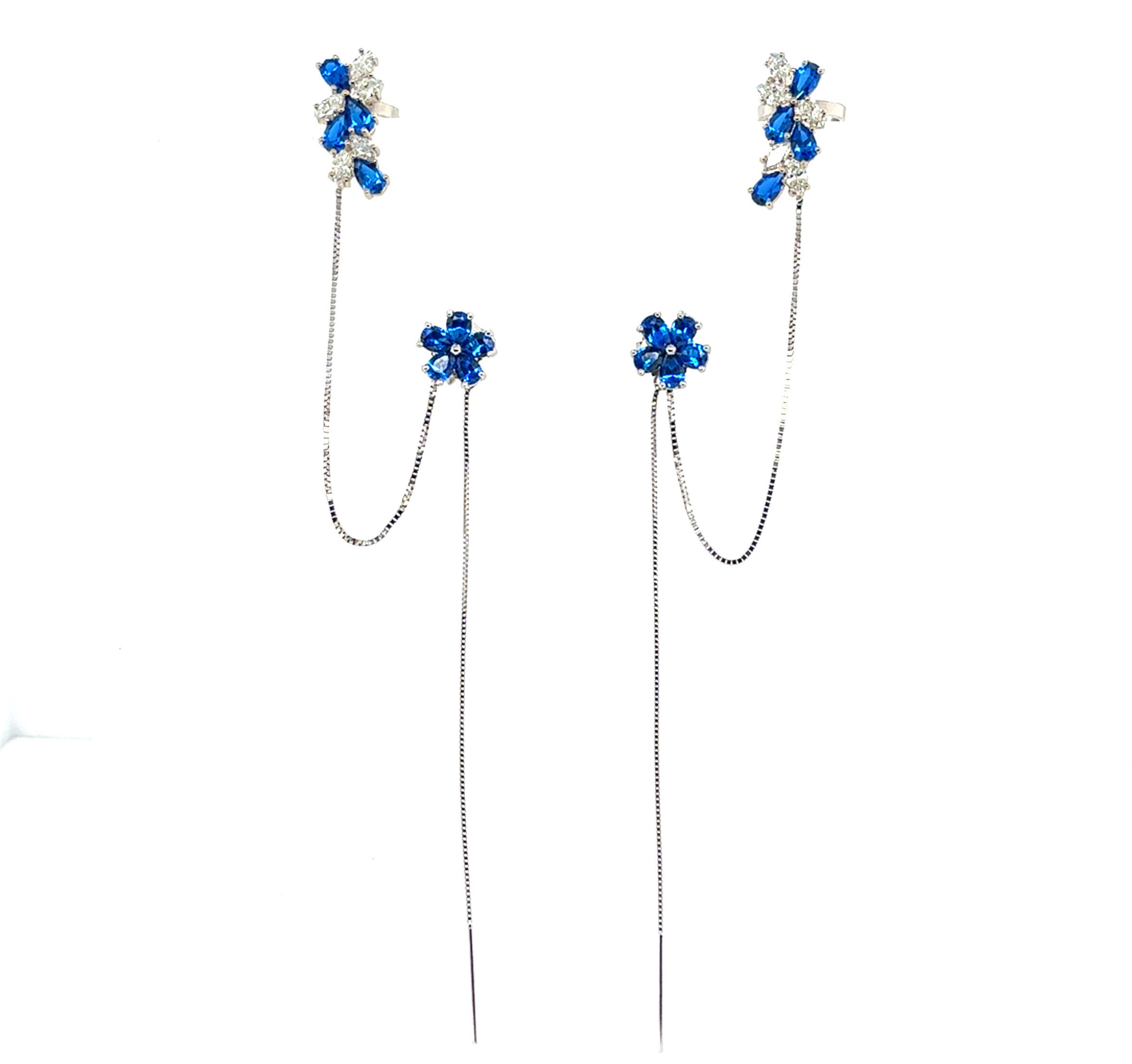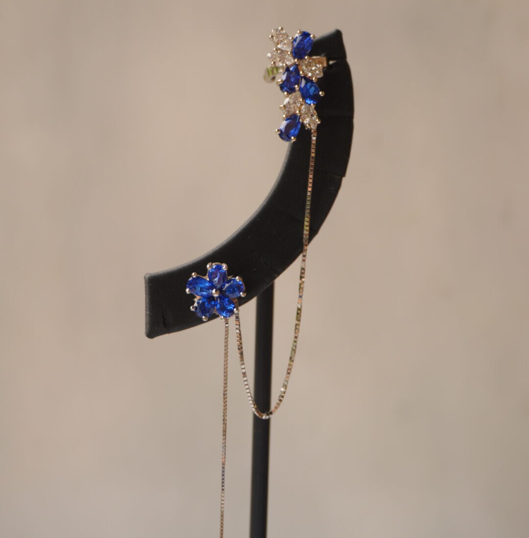 14 Karat White Gold Crawler Earrings with Pear Cut Sapphires and Diamonds.