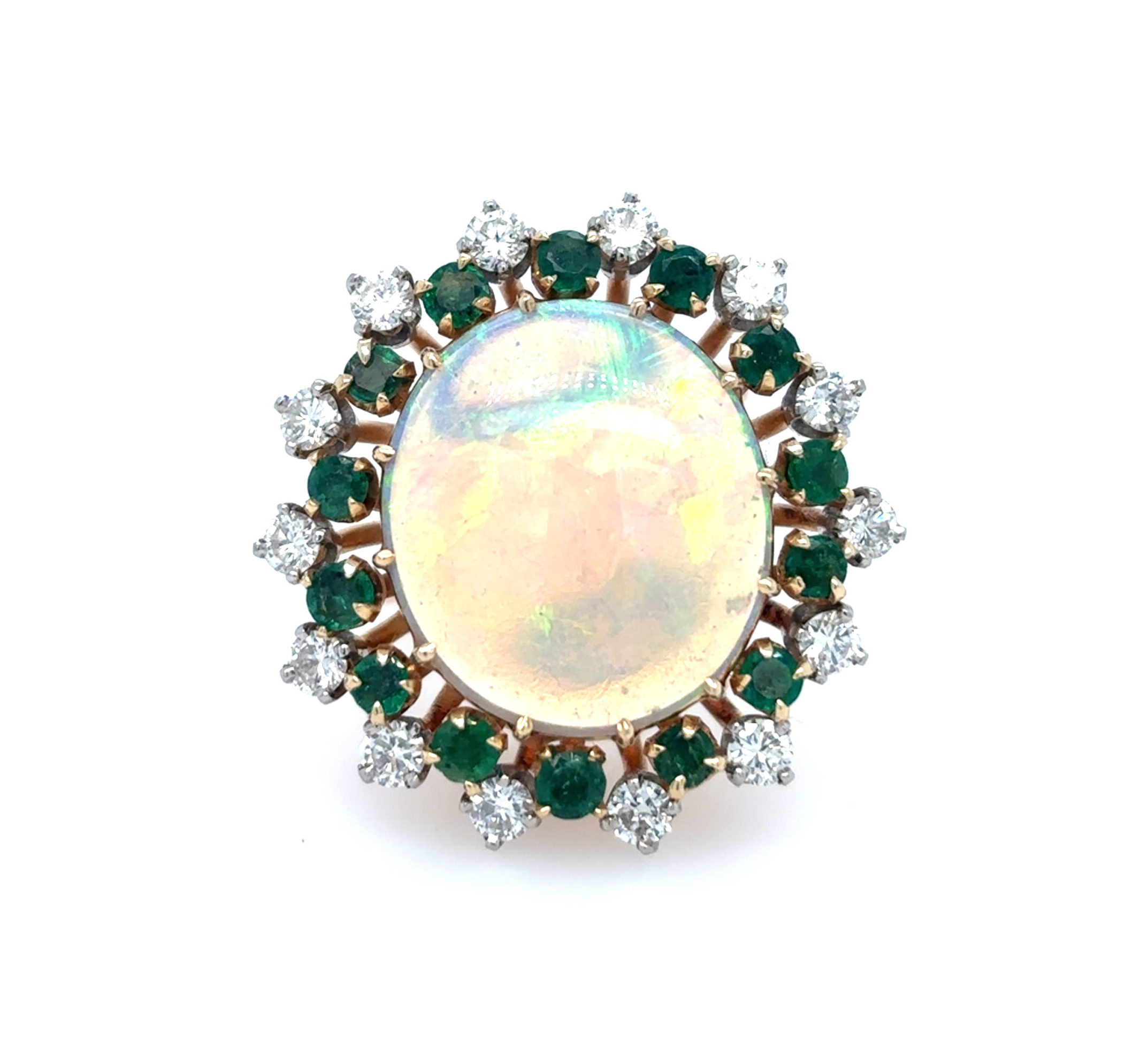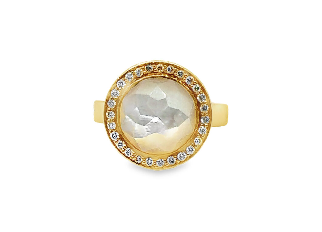 18 Karat Yellow Gold Opal Doublet and Diamond Ring with 0.37 carats of Round Brilliant Diamonds.
