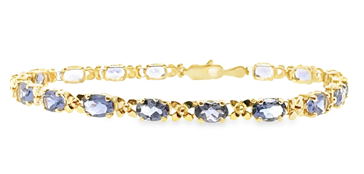 14 Karat Yellow Gold Tanzanite Bracelet. The Tanzanites weigh approx. 8.50 carats total weight.